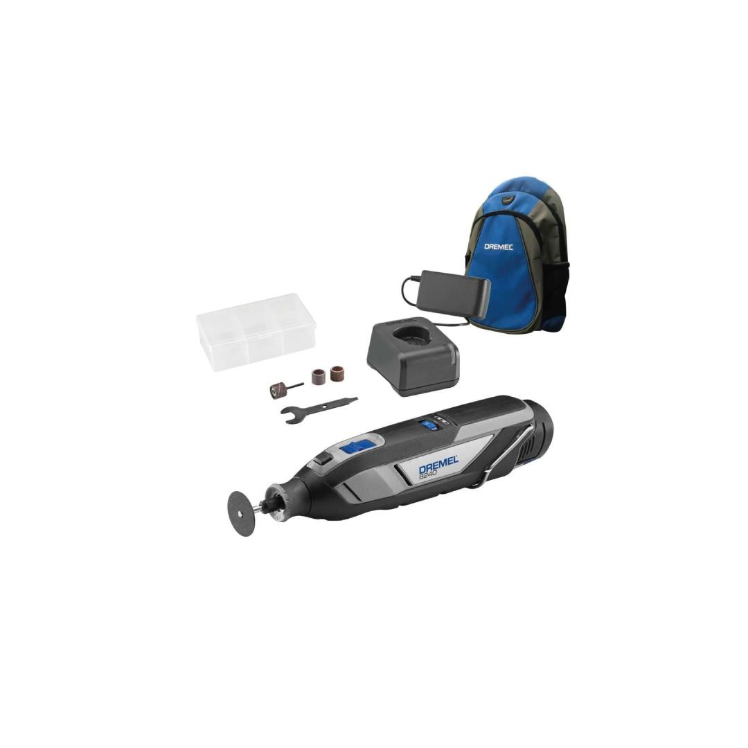 Dremel 8240'ın gücünden yararlanmak için ihtiyacınız olan temel ürünler. 12 V, 2 Ah akü ve 2 Ah Şarj Cihazı ile birlikte teslim edilir. Beş parçadan oluşan aksesuar seti size kesme ve zımparalama için gereken ürünleri sağlar.